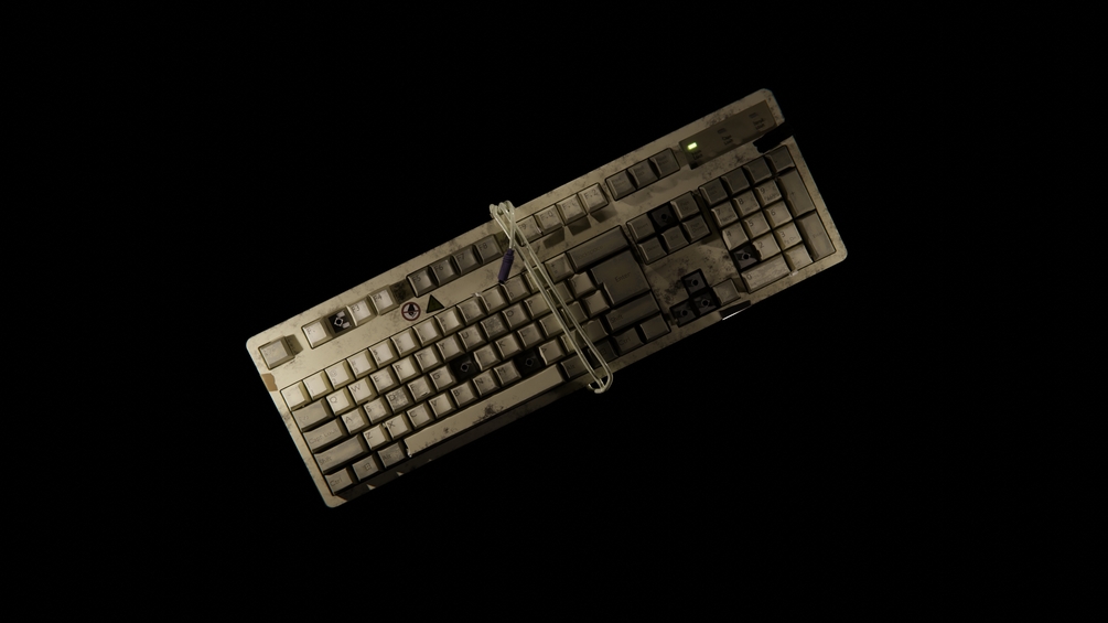 A ready-to-use 3D model of an old, used keyboard with a working light, camera and animation setup!